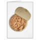 Öppen burk med flingad tonfisk isolerad på vit bakgrund