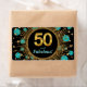 Kvinnans 50-åriga vattenflaska-etiketter med söt svart och guld stjärnburst och guld-nummer på en vacker tealblått svart och guld. Du kan lägga till valfri text för att anpassa dessa etiketter för vattenflaska av söt. Du kan också ändra bakgrunden till färg. Dessa är inte säkra mot vatten.