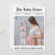 En charmerande dagstidning-stil-babyduschinbjudan med gender-neutralt. Innehåller fotopunkter på anpassadet både fram- och baksidan, tillsammans med utrymme för ett personligt stycke och händelseinformation, inklusive datum, plats och OSA. Ett tidlöst och personligt sätt att dina spännande nyheter!