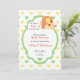 Denna trendiga elefant-tema inbjudan till baby shower har en pastell könsneutral design. Den har en mamma och en gul bebis-elefant på pastellgrön och gul hjärtmönstrad bakgrund. Baksidan är accentuerad med en kantdesign av paradiska bebis-elefanter. All text är formaterad på både fram- och baksida och redo för att du ska redigera med dina egna detaljer.