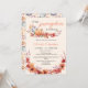De pumpafall-tema baby shower-inbjudningarna har en delikat akvarelldesign med höstlöv och blommor i varma nyanser av orange, röd och rosa. Inbjudningarna visar vackert handmålade pumpor omgivna av livfulla blad och blomknoppar, mot en mjuk, krämfärgad bakgrund. Eleganta typsnitt ger en touch av sofistikation, medan subtila akvarell-tvättar ger en charmig, rustik känsla. Inbjudan är genomtänkt utformad för att skapa en varm och inbjudande miljö perfekt för att fira den kommande ankomsten.