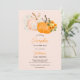 Lite pumpa är på väg! Meddela din kommande babydusch med våra boho-inspirerade inbjudningar, med söta och charmerande pumpor, solblommor och vit blommigt vattenfärg med rosa, orange faller Halloween Pumpkins, orange och gult solblommor och grönenergi med vita blommor bouquet på ljuspastellens rosa. Det moderna penselskriptet tillför en smula elegans till dessa unika inbjudningar som är perfekt för alla boho fall eller Halloween-temed firande., perfekt för utomhus och trädgårdsodling party.