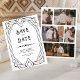 Överraska dina gäster med detta eleganta bröllopssparande datum med en vintage art deco-ram. Lägg helt enkelt till dina evenemangsuppgifter i denna lättanvända mall och pryda detta kort med dina favoritfoton för att göra det till ett unikt sparande datumkort.
