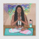 Yoga, fredsgraffiti art... gatukonst i Urban, afrikansk-amerikansk kvinna som mediterar.