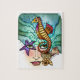 En fantastical vision av ett kvinnligt med det flödande hav vinkar hårsimning under hav med en skämtsam lila, och orangeseahorsen, en violett sjöstjärna för klämmiga blått, tre naturliga tonade snäckor som betonas med ljust och att bölja bubblar.
