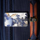 Avslappnande japanska toner av blått i en vintageträkloss skrivar ut.