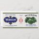 Gammal illustration etikett för förpackning av burkprodukt, reklam med en färsk från gården bunt ärter i en balja redo för skörd och en skål skalade ärter redo att ätas. Ät dina nyttiga grönsaker! Gammal reklam för konservering för Winsom Tom Thumb Peas. Förpackad av Edgett Burnham Company, Newark, New York.