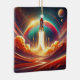 Konsthantverk med vibrant färg, som avbildar en raketuppskjutning i rymden. Perfekt för att inspirera till en känsla av och prospektering, kombinerar den här designen djärv surrealism med kreativt kosmiskt inslag för att skapa en fängslande och drömmande syn.