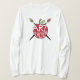 En t-skjorta för konstlärare som presenterar en illustration av ett rött äpple med målad text "KONSTLÄRARE" i vit. Två borstar korsat bak äpplet. En paintbrush med rött och vit målar, en med grönt.