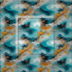 En konstnärlig, sömlös formgivning av gyllene vinkara mousserande i blues, turkos och vitt skum som kraschar mot kusten, målat i oljor