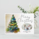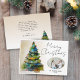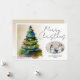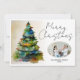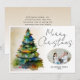 Konstfotokort för färgsfoto i Julgran. Festiv vattenfärg teckning i ett färglöst Julgran med God jul önskat trendig i ett skript. Anpassa texten på framsidan och meddelandet på baksidan och lägg till fotot.