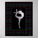 Gymnastiken poster med ord, "gymnastik" skriven över och över i olika färg. Ord är i form av ett ram, som omger en vacker silver gymnast i en attitydform. ©gollygirls.com