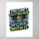 "Den här artificiella intelligensdesignen har den fet sloganen "Du kan inte träna ut AI men du kan arbeta med det" i futuristiskans typografi. Perfekt för teknikentusiaster, innovatörer och programmerare, detta AI-konstverk belyser samarbetet med teknik och kreativitetens framtid."