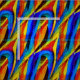 Stark konstnärlig vattenfärgsmålning. Abstrakt sömlöst mönster i blått, gult och orange. Matchande presentteckningar.