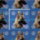 Handsome artistic rendition of the head of a German Shepherd Hund on a blue with tass avtryck and track in grått, blue and rosa. Utformning av Diane Blackman. Samma design finns med annan roligt hund bilder.