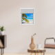 Persika och blå tropiska hav, falska fönsterscen, för ett fönsterlöst badrum eller en kontorsvägg. Roligt, realistiskt optisk illusionsscenk poster för ett kontor eller en studiekur.