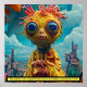 Möta din nya intergalaktiska kompis! Denna nyckfulla alienkyckling, med sina stora, hypnotiserande ögon och livfulla, utomjordiska design, är här för att tillföra lite kosmisk kul till din dag. Perfekt för alla som älskar konstiga karaktärer och kreativitet utanför denna världen. Låt denna fyrögda underverk tillföra en stänk av det bisarra och en touch av glädje till din värld.
