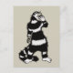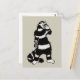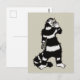 Skrovgig vykort med ett bläck teckning som skildrar ett märkligt svart och vitt strippat kattunge med lång nacke som håller en skallmask. En av hans handskar verkar vara ute och hans skeletthanddukar visar från sin sleeve. Jag undrar om det är mycket mer av en läskig varelse än det låtsas vara på Halloween.