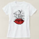 Konstig läppar skjorta med bläck teckning av rött läppar dekorerat med vita prickar och märkliga snurrar.