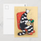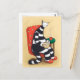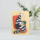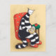 Bibliotekskort för en kattälskande bibliotekarie med en rolig illustration av en konstig svart-vit randig katt-skapelse med lång hals som stannar hemma. Den här underliga karaktären stannar hemma, sitter fredfullt i en orange stol med ögon, slappnar av och läser en gåtfull bok. Den njuter av en varm kopp kaffe i sina tofflor dekorerade med ögon.