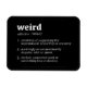 En flexibel magnet som innehåller lexikondefinitionen för ord konstig. Konstig är ett adjektivt ord som elak. 1. som inbegriper eller antyder det övernaturliga, orädda eller otäcka. 2. Uppseendeväckande eller utomordentligt singulär, udda eller drottare. 3. som rör eller kontrollerar ödet eller ödet. Typografi 🖤