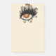 Konstig öga noterar med en digital illustration av en kvinnlig öga med bruten iris gjord av lava och långa ögonfransar som slutar i bisarblommor med vinklade petaler i ett grumligt grått himlar.