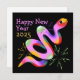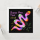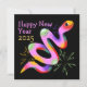 Denna eleganta nyårskortdesign har en konstig orm med färgglada fyrverkerier på en svart bakgrund.