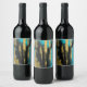 Konstnärlig Abstrakt i turkos, Guld och svart Vinflaska Etikett