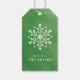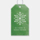 Konstnärlig akvarell snöflinga grön jul presentetikett