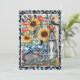 På detta jubileumskort finns en underbar mural med kaniner, fåglar och en solrosbukett blommigt. Gräns-formgivningen anpassas från ett antikt schinoiserie-lermålande. Det här färgkortet går tillbaka till bara gräns och "Lycklig-årsdagen" i skript på vitt. Perfekt för alla som kärlek djur och invecklade kreativ. Nyskapande, unika teckningar och design av Tuzi Williams.