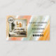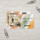 Företagskort med dina egna foton på framsida och baksida, inramade av en konstnärlig färgprovdesign med guld. En mall för din logotyp, anpassad QR-kod samt ikoner för sociala medier läggs till. Du kan antingen anpassa eller ta bort dessa. Perfekt för en inredningsdesigner eller professionell som arbetar med hemmontage och kan anpassas för andra ändamål.