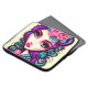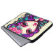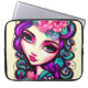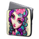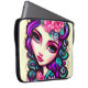 Det här är en roligt, ett konstnärligt laptop sleeve med en vismisk illustration av en flicka i lila, rosa och turkos mot bakgrund av en lätt gult.