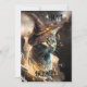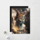 Ett roligt konstnärligt Halloween-kort med en katt med häxhatt på en mörk stjärnig natt.