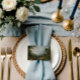 Konstnärlig landskapsbröllopsromantisk blå placeringskort