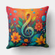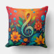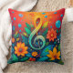 Konstnärlig musiknot omgiven av färgglada blommor kudde