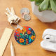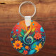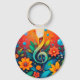 Konstnärlig musiknot omgiven av färgglada blommor nyckelring