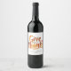 Konstnärlig Orange GiveThanks Höst Pensel Skrift Vinflaska Etikett