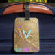 Modern och trendig personlig bagagetagg med lila-, rosa- och tealfärgstänk med guld-, glitter- och färgstänk. Texten är helt och hållet anpassade.