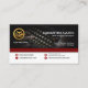Ett enkelt modernt Affärskort indelades i två avsnitt. Överst ljuger du en bild av en gammal skrivmaskin. Faux-guld-logotypen och namnen är i det övre lämnat hörnet. Öst är er prestigefyllda Namn och position. Ett sloganalternativ finns nedanför. En röd kolumn rand avgränsar den översta delen från den vita kolumnen under. Det är här som alla kontaktuppgifter förvaras enligt respektive ikonknapp.