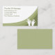 Trendigets moderna affärskort för massageterapi skapat i vackra gröntar med massage-händer grafik i bakgrunden och klassiskt företagskonfigurationslayout som du kan anpassa online.
