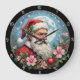 Den här vackra cirkelbilden har ett klassiskt tittar Jultomten med ett långt vitt skägg och ett rött kostym. Porträtt ställs mot en stjärnnatt himmel med ett stort, glödande måne. Festiva gräns består av rosa blommor, röda hollbär och gräs-koner, som ge hela utformningen av ett varmt och elegant helgdag.