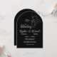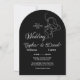 Svart och vitt bröllop-kort av elegant med minimalistisk illustration av konst och förfinad typografi. Den feta svarta bakgrunden med vit text skapar ett sofistikerat och tidlöst utseende som är perfekt för lyx, svartvit eller modern bröllop. Romantisk kalligrafi för det första namn parad med klassisk serif typsnitt för efternamnen lägger till både charm och läsbarhet. Fullständigt anpassade - Anpassa namn, datum, tid och plats för speciella firande. Perfekt för par som vill ha en chic och ett konstnärligt verk i stil.