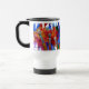 En toppen mugg med locket, en livlig färgbakgrund med konstnären borstar; förhindrar några spill och håller ditt kaffe varmt.