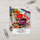 Konstnärsfärgsfack och pensel på blommor visitkort