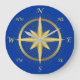 En Snyggt blå väggklocka med en digital illustration av en gyllene kompass ro. Finns i andra alternativ. Besök vår butik om du vill ha fler väggskåp och andra hemgåvor.