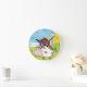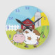 Cute land, matade väggur för ditt hem i land. Dessa anpassade tecknader har en lantbruksutformning av en ko som står i fält med en röd lada och silo i bakgrunden. Dessa vackra klockor skulle göra underbara gåvor till vänner och familj som har ett land-dekorhem.
