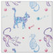 Vattenfärg målad med ljust, fjälligt, katt. Vitt tyg och färgstarka mönster av rosa, blått, rött, tårblått, lila, turkosa blått.