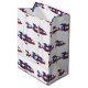 Fiskgrafik och Trump namn med Amerikanska flagga mönster på vitt. Bakgrunden till färg kan ändras.
