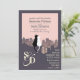Monogram temed bröllopsinbjudan, med katter inslag och stadsvy. Utformning av tecknaden, lämplig för bröllop-meddelanden, förlovningar för par som kärlek sina sällskapsdjur eller katter i allmänhet. Anpassa brev i monogrammet och annan text.