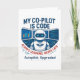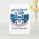 "Denna artificiella intelligensdesign har en futuristiska biträdande pilot vid kontrollerna med citatet "My Co-Pilot is Code". Perfekt för kodrar, AI-entusiaster och teknisk älskare som anammar AI-autopilot, uppgraderingar och maskin-inlärningsinnovation."
